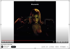 Indice: elle a deux armes braquées sur son visage (on va supposer que ça symbolise l’ingénierie sociale en question, contrôle mental d’hyper-sexualisation des femmes pour satisfaire les prédateurs-humains)